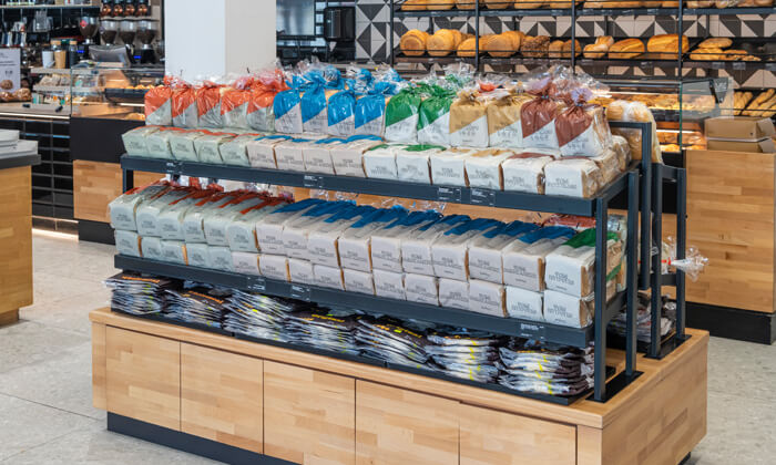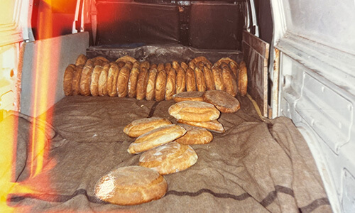 Δημιουργούμε τα πρώτα ψωμιά σε φέτες, τα οποία κόβουμε στο εργαστήρι. Αργότερα, με ένα νέο ειδικό μηχάνημα, συσκευάζουμε το ψωμί σε διάφανη συσκευασία.