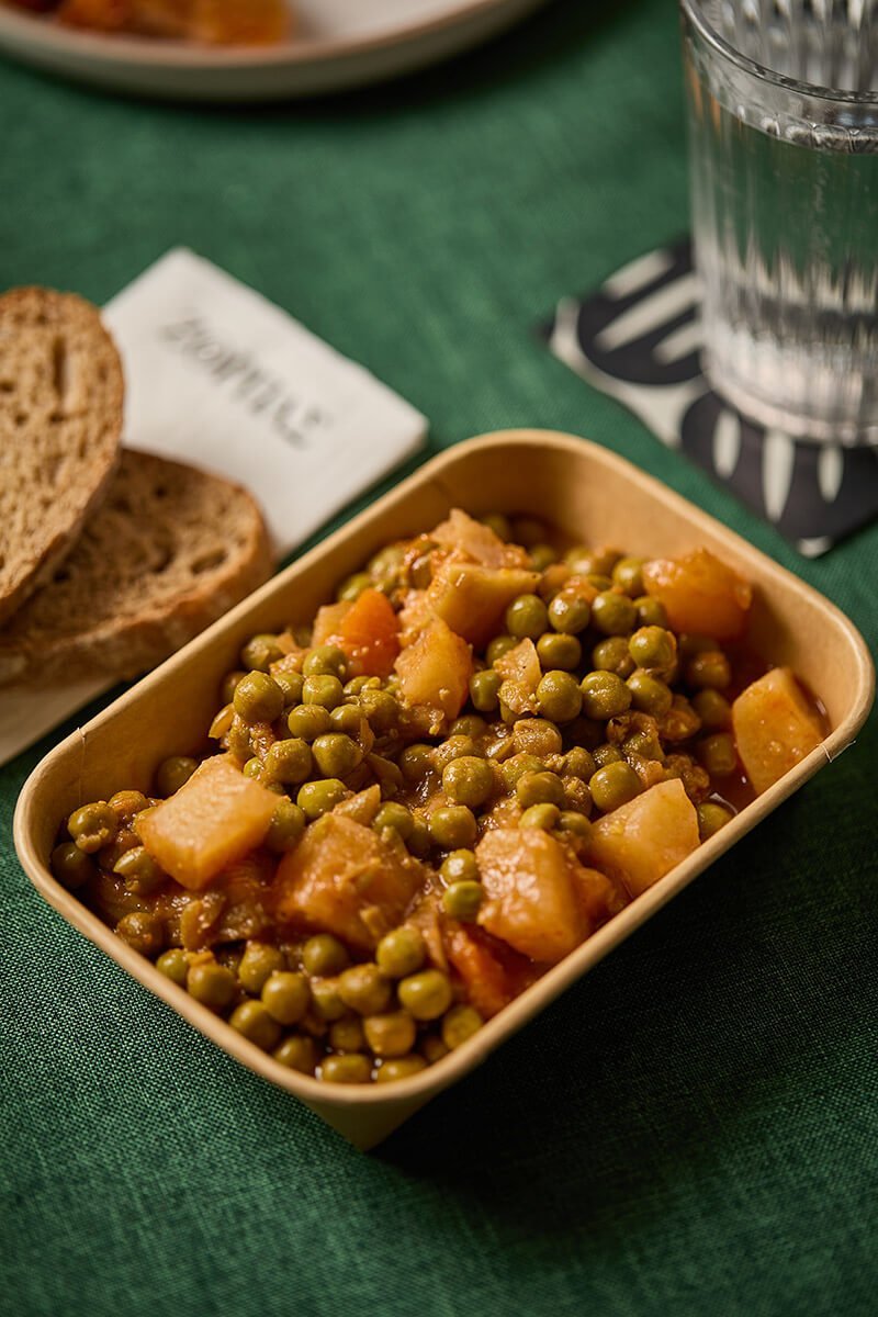 Peas with potatoes and vegetables make you feel like you’re coming home, even if you’ve got hours of work ahead of you. Enjoyed better with a slow-fermented or Athienitiko bread.
