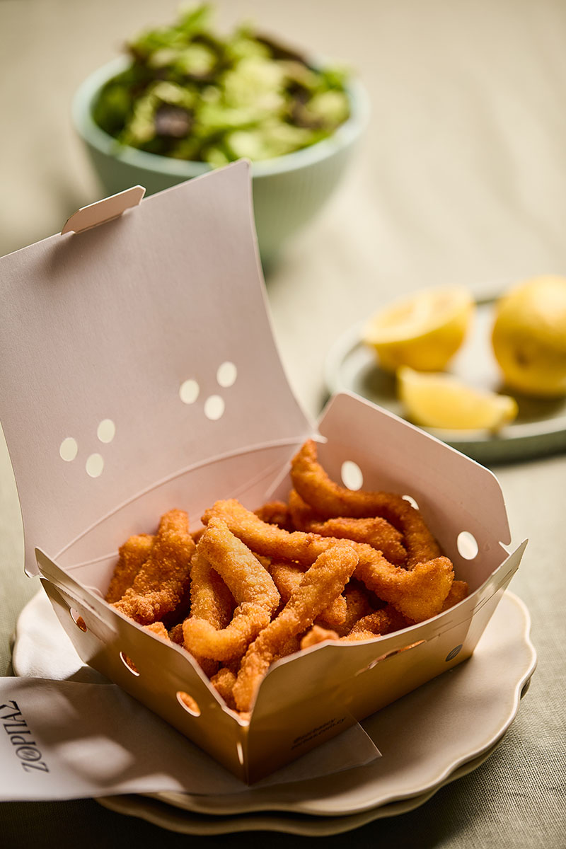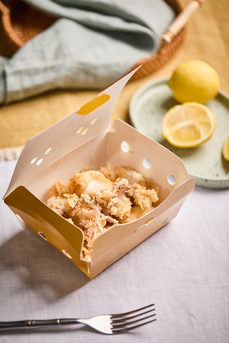 Ολόκληρα καλαμαράκια για ολοκληρωμένη γεύση. Τηγανίζονται στη στιγμή, γι’ αυτό είναι τόσο τραγανά, ενώ παραμένουν τρυφερά στο εσωτερικό.