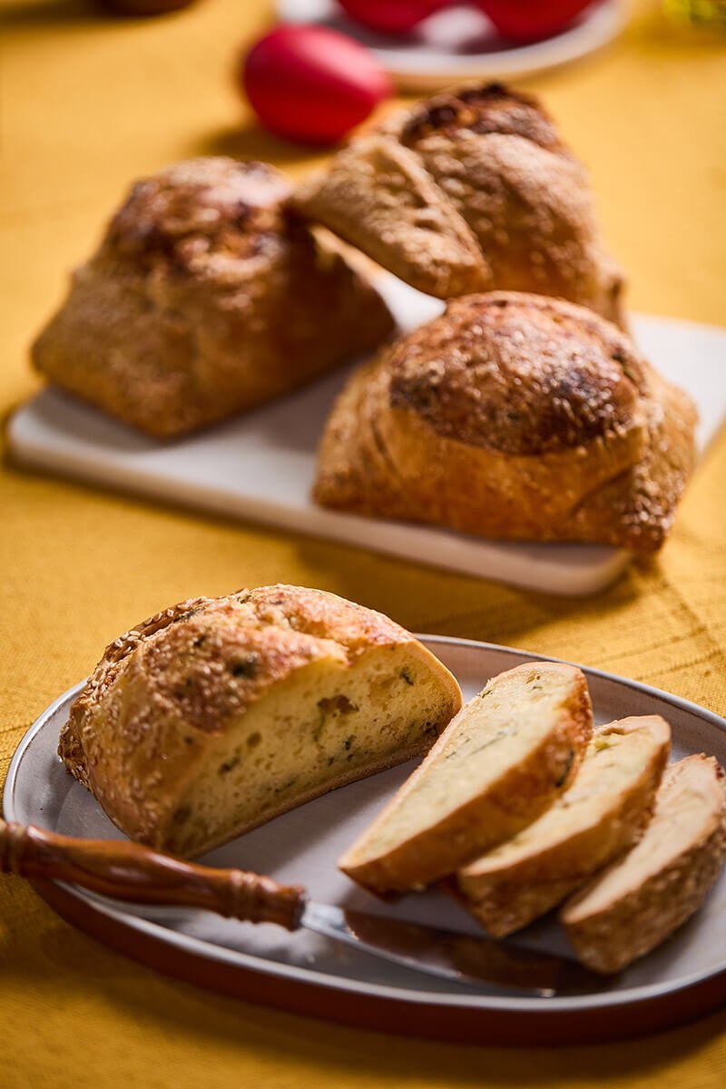 Το πρωινό σου αποκτά άλλη διάσταση με το άρωμα του φρέσκου τσουρεκιού να γεμίζει τον αέρα. Ένα ζουμερό, αφράτο τσουρέκι, φτιαγμένο με προσοχή και μεράκι, που σε ταξιδεύει με κάθε μπουκιά. Η γεύση του μαχλεπιού και του βουτύρου σε συνδυασμό με την ελαφριά γλυκύτητα του, κάνουν το πρωινό σου πιο γλυκό και γεμάτο ενέργεια για τη μέρα που ξεκινά.